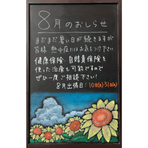 今月も出張のため、10日(日)・31日(日)は札幌での施術ができませんのでご了承ください。