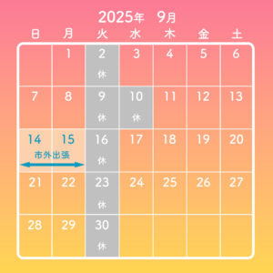 たくみ接骨院・整体院の9月営業日のお知らせです。